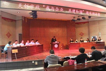 武漢天創(chuàng)市政建設(shè)工程有限公司組織舉辦“我與企業(yè) 共建和諧”趣味辯論賽,集團公司陳穎書記、邢榮斌主任等領(lǐng)導(dǎo)到場觀看了比賽。