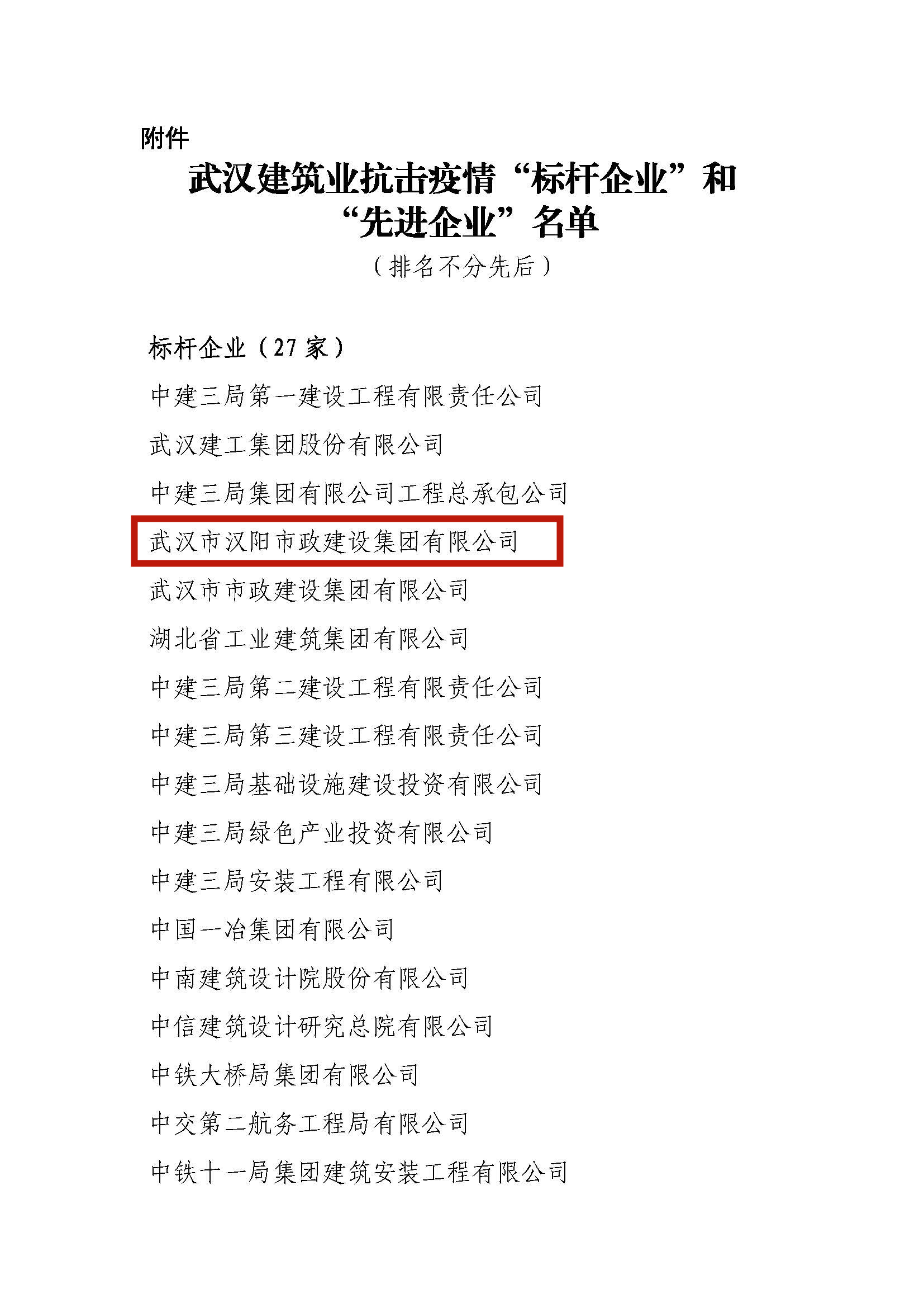 ? ? 近日,武漢建筑業(yè)協(xié)會(huì)表彰武漢建筑業(yè)抗擊疫情的“標(biāo)桿企業(yè)”、“先進(jìn)企業(yè)”。其中集團(tuán)公司榮獲“標(biāo)桿企業(yè)”榮譽(yù)稱號(hào),武漢鐘鑫市政建設(shè)工程有限公司、武漢博宏建設(shè)有限公司、武漢天創(chuàng)市政建設(shè)工程有限公司榮獲“先進(jìn)企業(yè)”榮譽(yù)稱號(hào)。