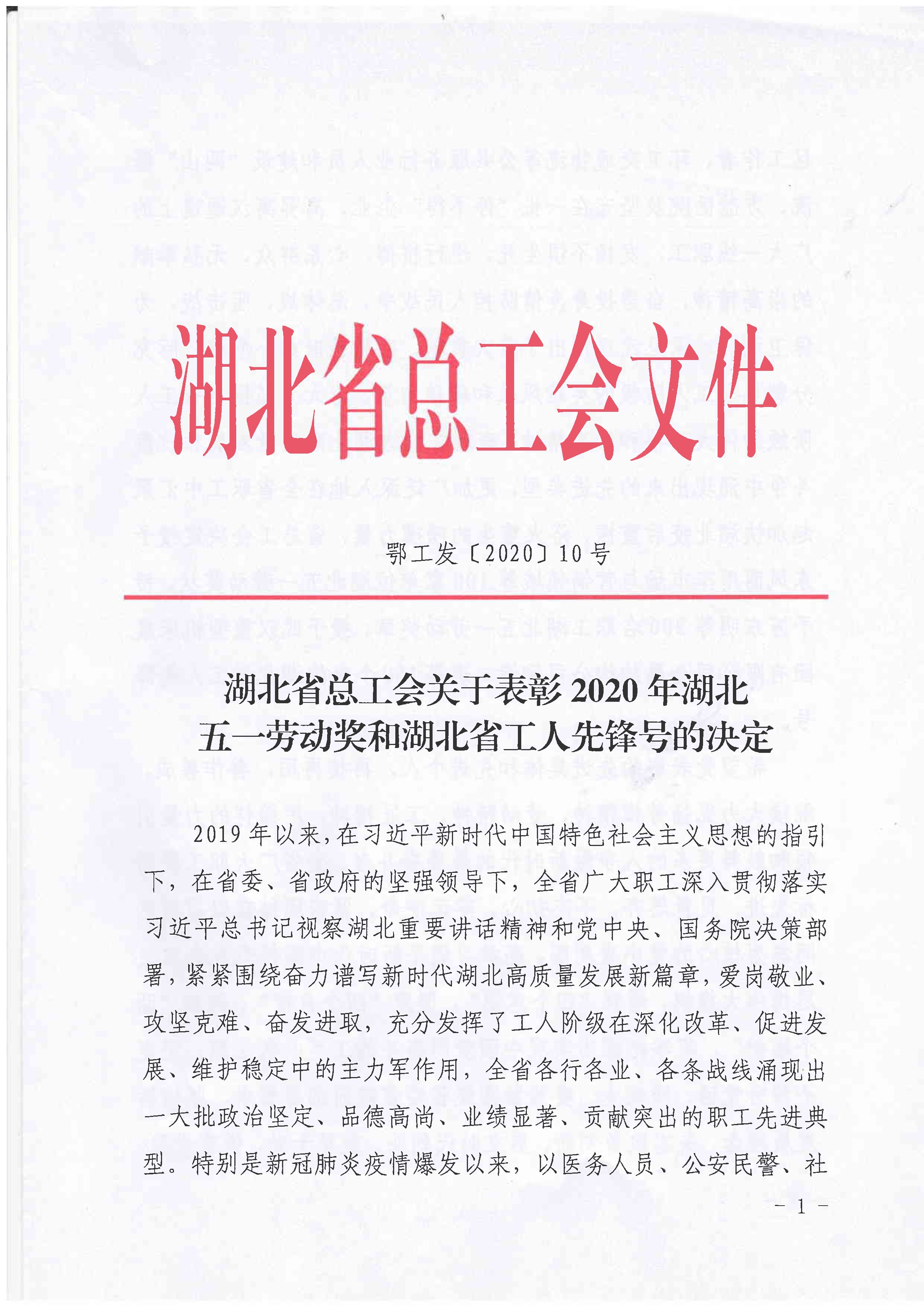 4月27日,湖北省總工會發(fā)布《關(guān)于表彰2020年湖北五一勞動獎和湖北省工人先鋒號的決定》(鄂工發(fā)〔2020〕10號),武漢市漢陽市政建設(shè)集團有限公司榮獲2020年湖北五一勞動獎狀榮譽。