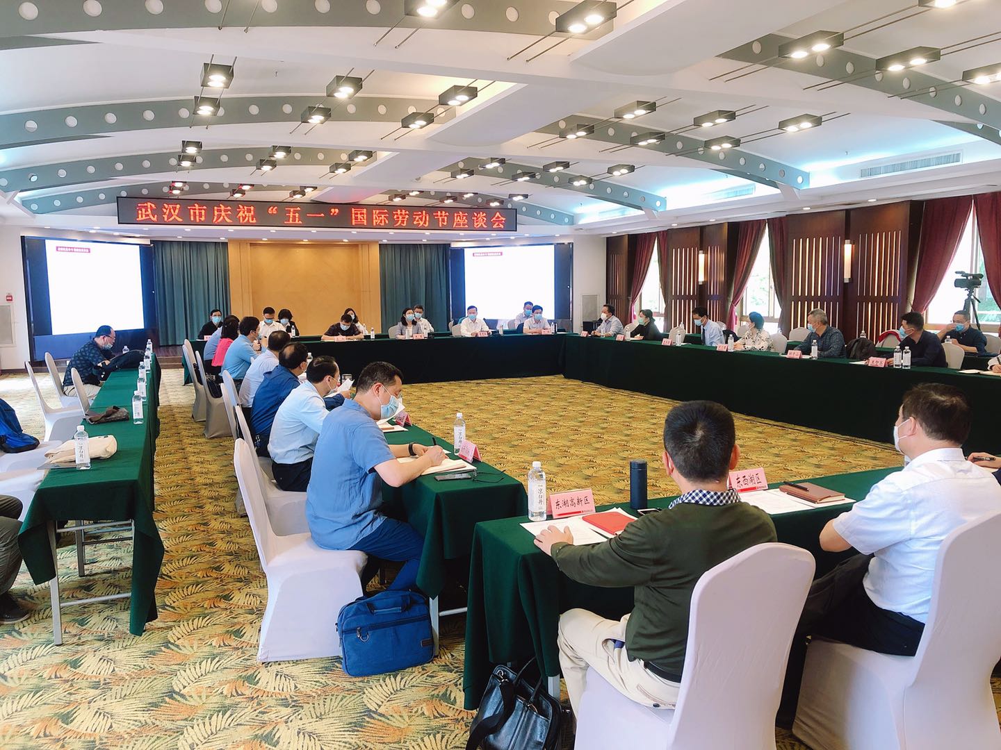 4月30日上午,為慶祝2020年“五一”國際勞動節(jié),武漢市總工會在武漢職工療養(yǎng)院(火神山醫(yī)院)會議中心召開了武漢市慶 祝“五一”國際勞動節(jié)座談會。