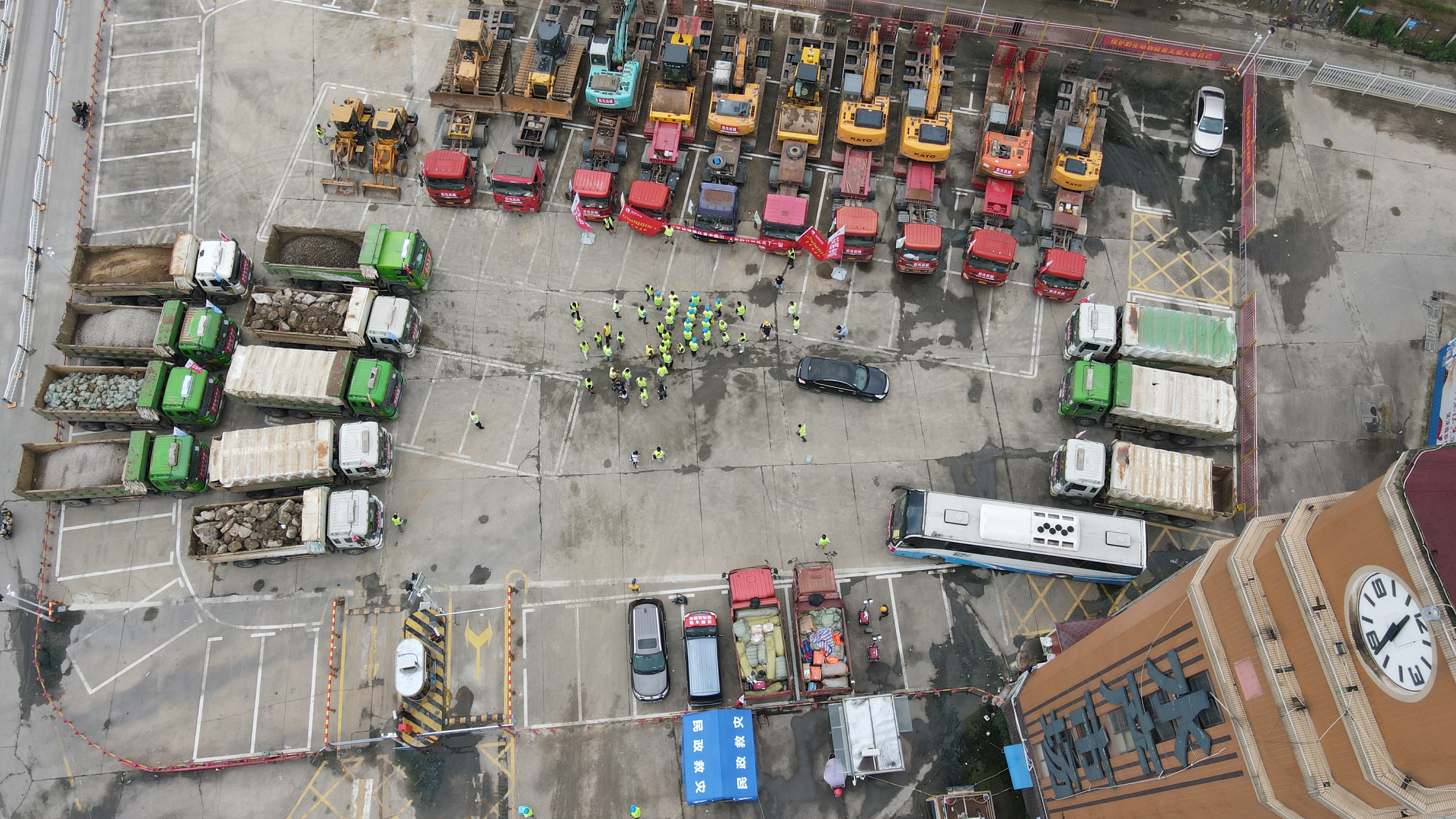 ? ? ? 作為本支突擊隊的主力軍,和諧大道項目經理黃平和安全主管郭康接到通知后,立即著手開始準備工作。人員不足,一、二、四項目部全力支援;機械、材料不夠,全公司范圍內緊急調度。短短半個小時內,6臺大挖機、12臺后八輪自卸車、10臺平板車、2臺壓路機、2臺農用車、2臺鏟車、2臺推土機全部調度到位,2000件編織袋、24方黏土、12車小石、12方粗石、36方石渣料、24方大石塊、20捆彩條布、20捆土工布、20把鐵鍬已裝車待發。