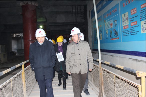 隨后,徐憲平一行深入到地下負二層,親臨地鐵施工現場,參觀地下隧道施工以及維護結構,見證洪山廣場站的施工過程。隨行人員向其簡要介紹了隧道施工情況。他指出,在軌道交通建設中,要堅持科學規劃、有序建設,確保安全第一。