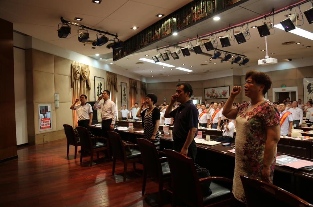 在群團公司辦公司副主任郭一清的帶領下,新黨員舉行了入黨宣誓,老黨員重溫了入黨誓詞,再一次將黨的誓言銘記于心。緊接著,集團公司工會主席邢榮斌同志宣讀了《2016年集團公司先進基層黨組織、優秀黨務工作者、十佳黨員的表彰決定》,經集團黨委和各基層黨委的推選,此次大會推選出二公司黨支部為“先進基層黨組織”,盧永紅等2名“優秀黨務工作者”、杜小燕等10名 “十佳黨員”及郭偉等17名“我身邊的好黨員”。隨后,公司領導為“先進基層黨組織”、“優秀黨務工作者”、“十佳黨員”、“我身邊的好黨員”獲得者頒發榮譽證書。隨后先進基層黨支部代表程強、優秀黨務工作者代表盧永紅、十佳黨員代表王哲等進行了發言,講述了他們作為一名黨員如何發揮黨員先進性和模范帶頭作用,對黨忠誠,敬業奉獻的先進事跡。他們事跡雖樸實無華,但激勵人心,鼓舞著漢陽市政全體黨員克難奮進,為公司的發展不懈努力。