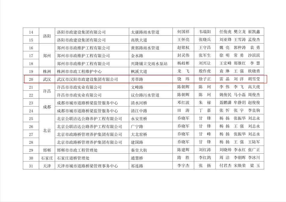 2017-2018 年度全國“城鎮市政養護示范設施”創建活動—— “扁鵲杯”獎獲獎名單(部分)