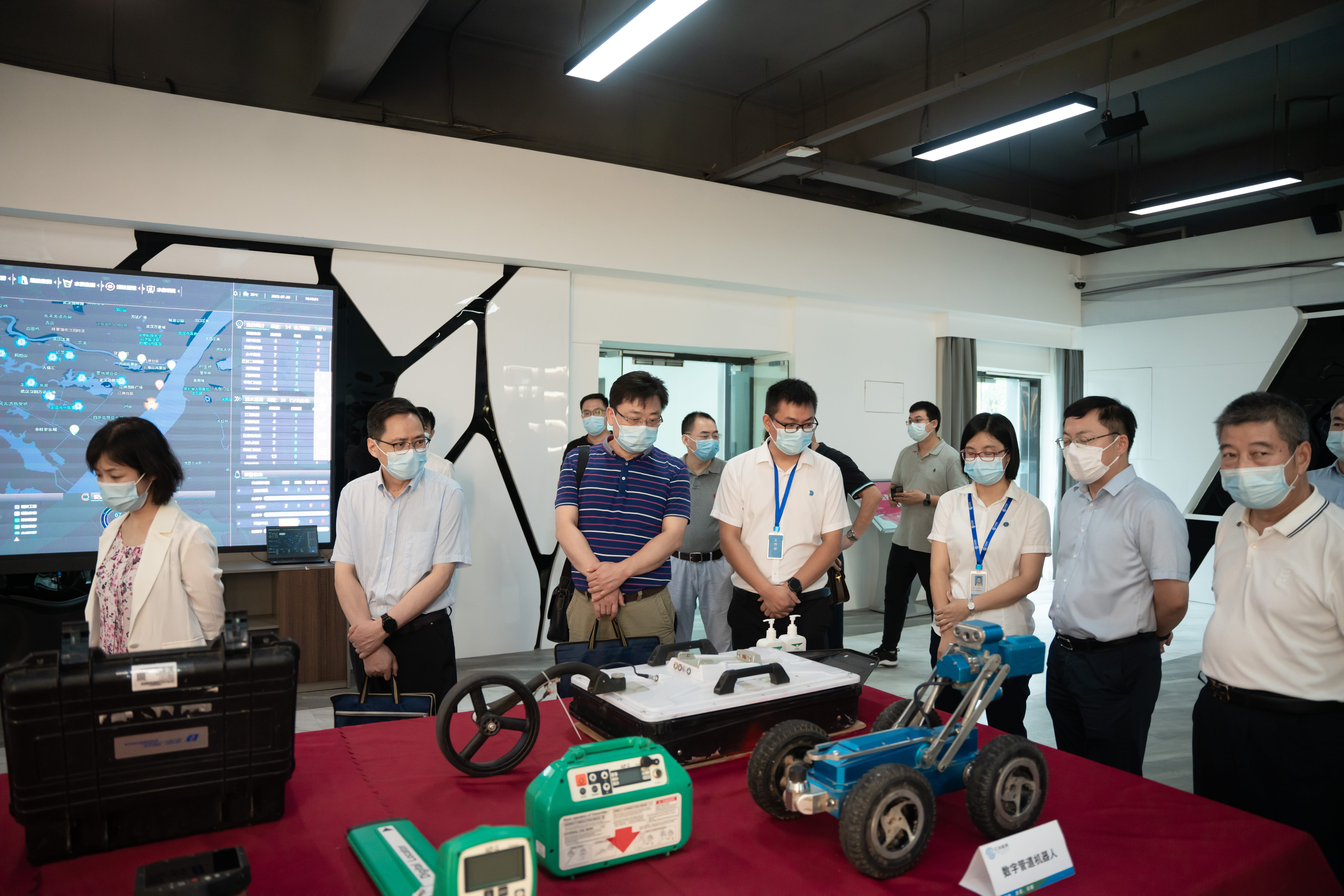 調(diào)研組一行首先參觀了檢測公司的實驗區(qū),在講解員的介紹下了解了道路綜合檢測車、三維雷達探測車以及落錘車的基本工作原理。隨后,調(diào)研組體驗了房屋巡查體感操作系統(tǒng),近距離參觀了數(shù)字管道機器人、TZ12全站儀、經(jīng)緯 M300 RTK、禪思P1等一批高新設(shè)備。漢陽市政檢測公司始終聚焦智能化檢測,大力引進核心技術(shù)和高新人才,擁有一大批先進的檢測設(shè)施和完備的資質(zhì)參數(shù)。十四五以來,堅定不移地貫徹落實十四五規(guī)劃精神,將提質(zhì)增效作為企業(yè)發(fā)展首要目標,在今年還取得了湖北省“專精特新”企業(yè)稱號。