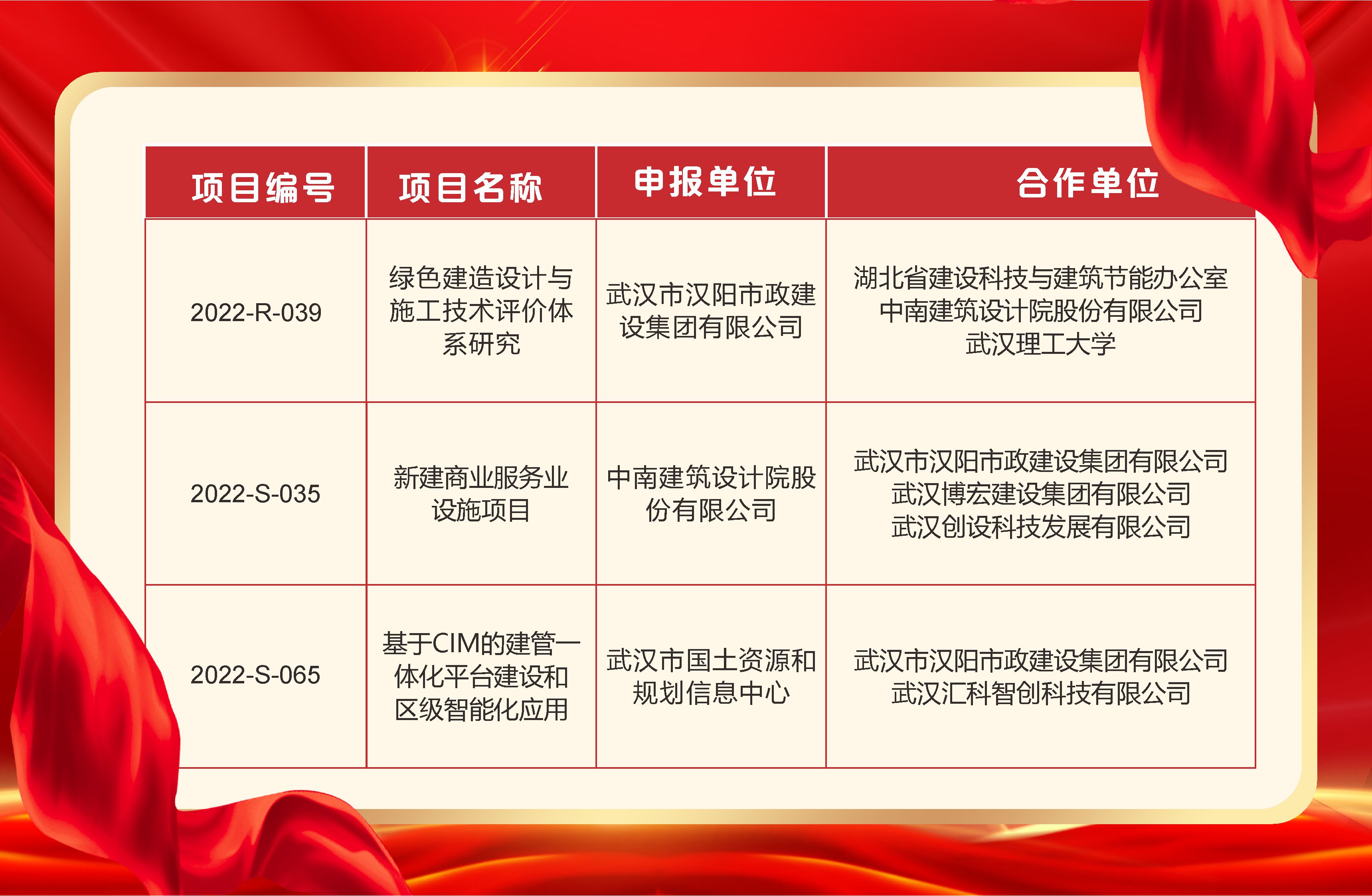 近日,國(guó)家住房和城鄉(xiāng)建設(shè)部公布2022年科學(xué)技術(shù)計(jì)劃項(xiàng)目評(píng)審結(jié)果,湖北省共11個(gè)項(xiàng)目獲批立項(xiàng)。漢陽(yáng)市政獲批3個(gè)項(xiàng)目,軟科學(xué)研究類(lèi)1項(xiàng),科研示范工程類(lèi)2項(xiàng)。首次申報(bào)即取得可喜成績(jī),標(biāo)志著公司在國(guó)家級(jí)科研項(xiàng)目上取得實(shí)質(zhì)性突破,具有里程碑意義。