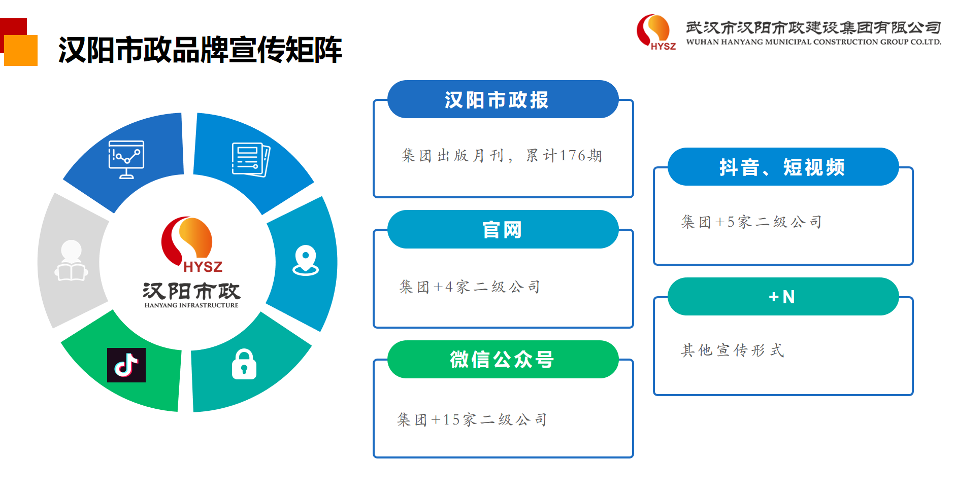 長(zhǎng)期以來(lái),公司品牌文化建設(shè)工作推陳出新,漢陽(yáng)市政報(bào)、官方網(wǎng)站、微信公眾號(hào)、抖音企業(yè)號(hào)、微信視頻號(hào)“5+N”傳播矩陣持續(xù)夯實(shí),現(xiàn)已形成“1+15”的微信矩陣,“1+4”網(wǎng)站矩陣和“1+5”的抖音矩陣。集團(tuán)《漢陽(yáng)市政報(bào)》連續(xù)四年獲評(píng)中施企協(xié)精品報(bào)刊;集團(tuán)微信公眾號(hào)獲評(píng)中施企協(xié)精品公眾號(hào)、全國(guó)建筑業(yè)優(yōu)秀微信公眾號(hào)、湖北省建筑行業(yè)優(yōu)秀公眾號(hào)、湖北十佳政務(wù)新媒體(城建);集團(tuán)官方網(wǎng)站獲評(píng)中施企協(xié)精品網(wǎng)站,訪(fǎng)問(wèn)量持續(xù)增長(zhǎng),品牌傳播力度不斷加強(qiáng)。