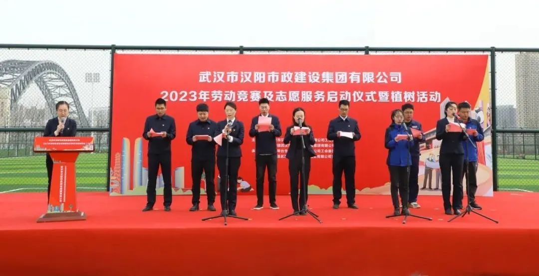 活動在公司總經理王智高致辭中拉開帷幕,他指出要用好勞動競賽、志愿服務、創先爭優等載體,大力倡導全體干部職工立足崗位、積極思考,勤奮勞動、創新勞動。總工程師荊武作生產動員講話,號召大家認清形勢,鼓足干勁,迅速掀起生產經營高潮;科學組織,周密安排,確保現場管理與生產經營扎實有序;明確目標,狠抓落實,確保生產任務圓滿完成。隨后在勞動競賽環節,黃桂華宣讀《漢陽市政2023年度職工勞動和技能競賽實施方案》,勞模代表葉清輝代表全體參賽職工宣讀勞動競賽倡議書,漢陽區總工會黨組書記、常務副主席李鐘、團區委副書記焦冉及漢陽市政出席領導為2023年引領性勞動競賽項目單位代表授旗。