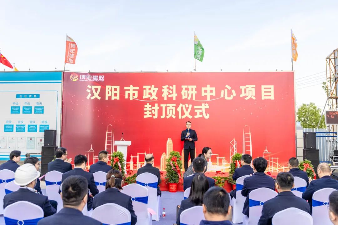 ? ? 2023年11月8日上午,漢陽市政科研中心封頂儀式在項目現場隆重舉行。漢陽區國資局黨組書記、局長嚴俊,漢陽區建設局黨組成員、漢陽區建管站站長王晟,漢陽市政集團黨委副書記、副董事長虞志鵬,總工程師荊武等領導,相關部門負責人以及項目一線建設者共計60余人共同見證項目封頂。