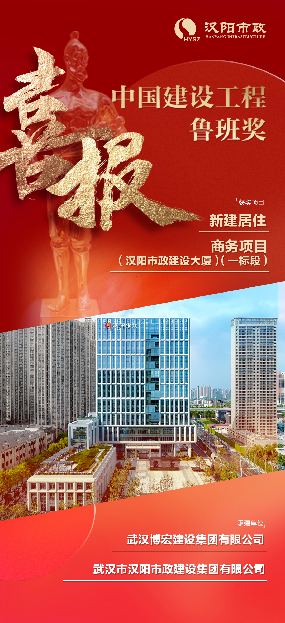 再添“小金人”!漢陽市政建設大廈榮獲魯班獎!