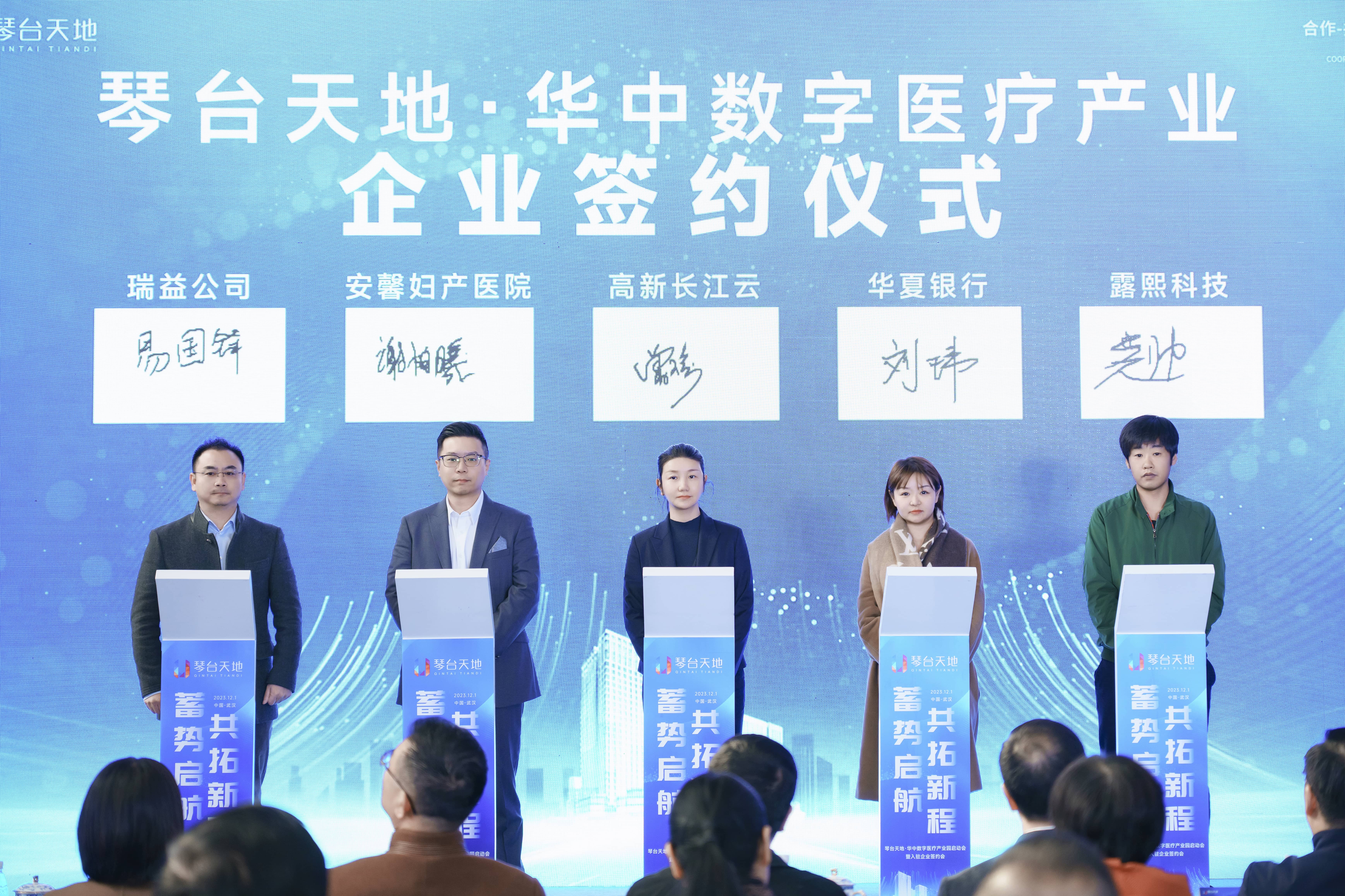 武漢安馨婦產(chǎn)醫(yī)院、武漢高新長江云科技有限公司、浙江露熙科技有限公司、華夏銀行漢陽支行與琴臺天地項(xiàng)目集體簽約