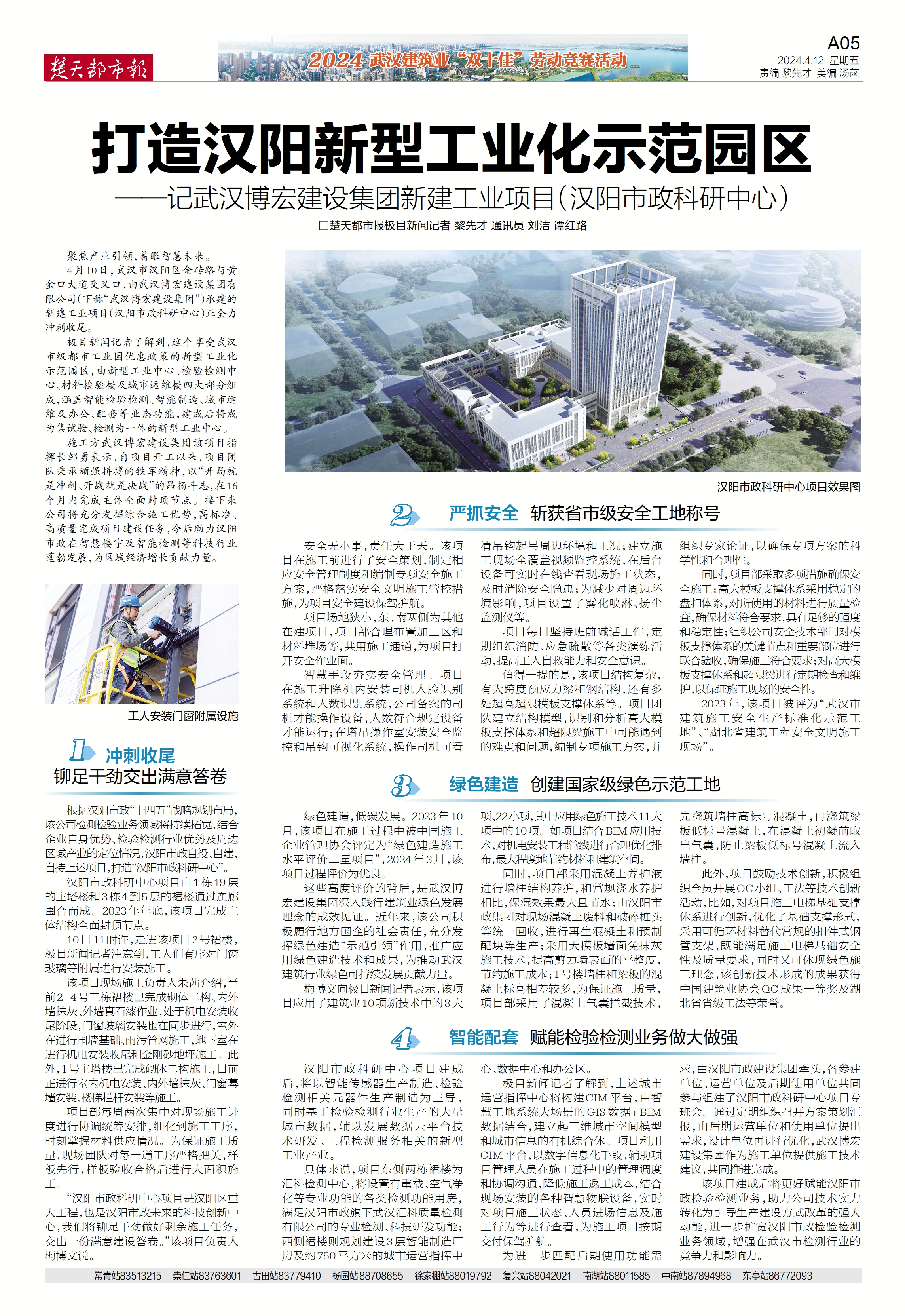 楚天都市報(bào)推出《打造漢陽新型工業(yè)化示范園區(qū)——記武漢博宏建設(shè)集團(tuán)新建工業(yè)項(xiàng)目(漢陽市政科研中心)》專版報(bào)道。