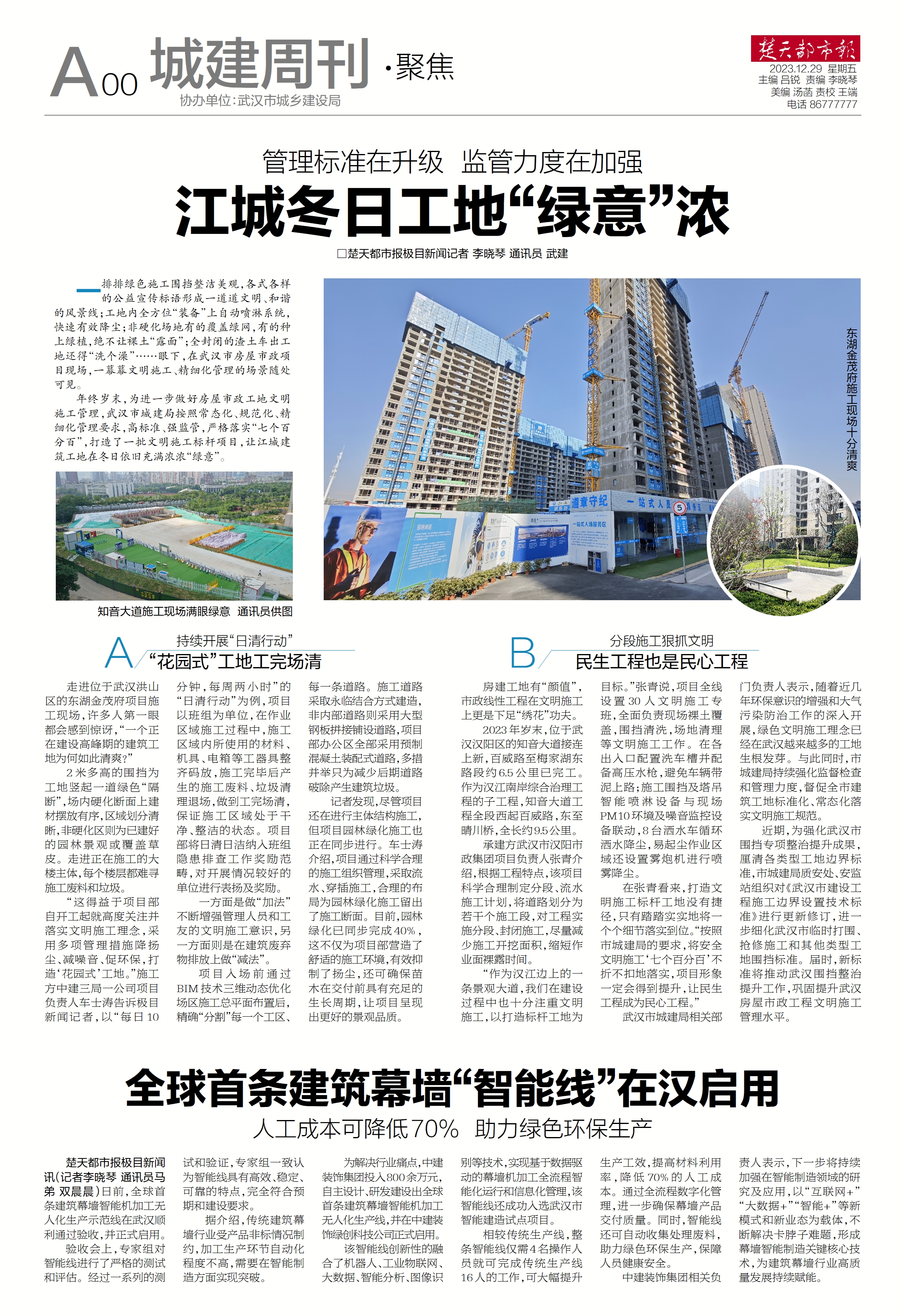 楚天都市報(bào)推出《管理標(biāo)準(zhǔn)在升級(jí) 監(jiān)管力度在加強(qiáng) 江城冬日工地“綠意”濃》專(zhuān)版報(bào)道。
