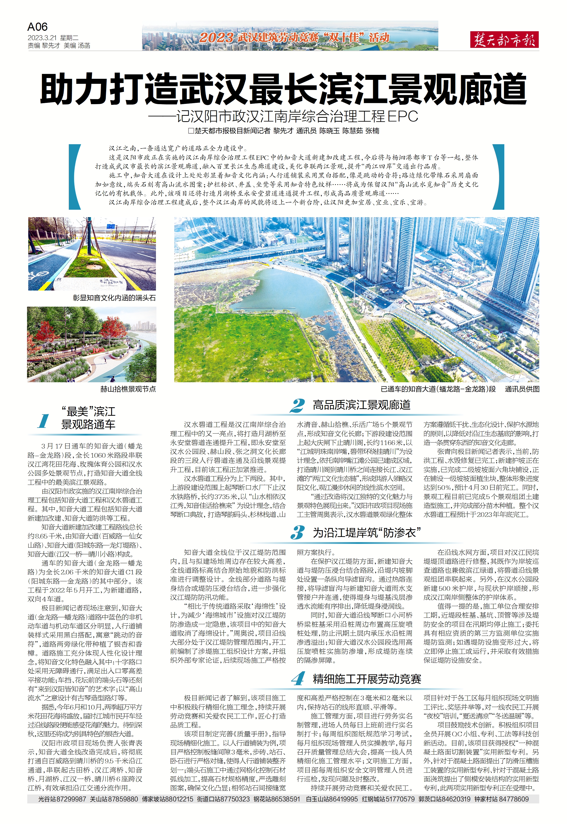 楚天都市報(bào)推出《助力打造武漢最長(zhǎng)濱江景觀廊道—記漢陽(yáng)市政漢江南岸綜合治理工程EPC》專版報(bào)道。