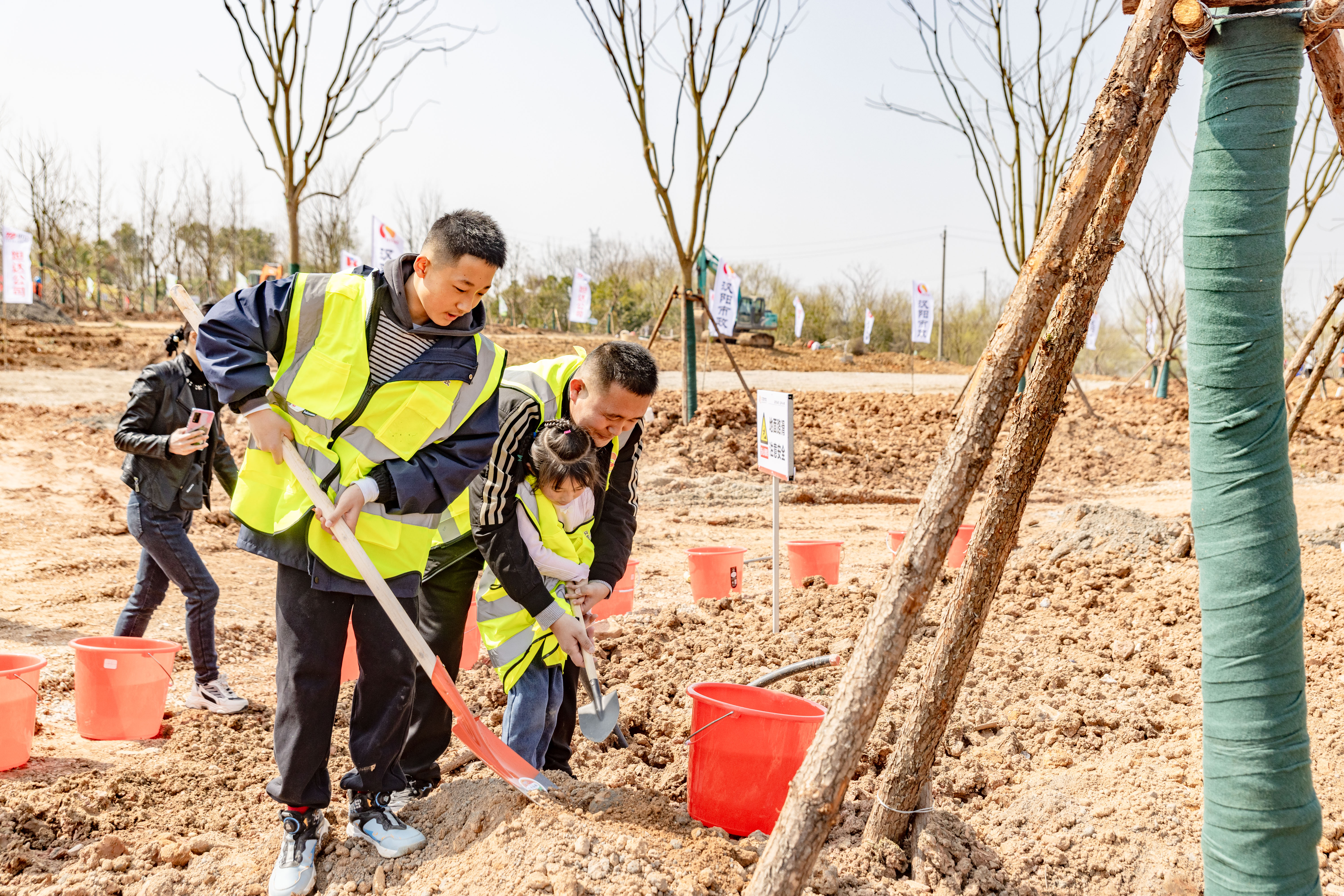 在簡單的熱身活動之后,大家帶著家人前往種植區。只見家長們手持鐵鍬、挖坑填土、抗苗,孩子們擺正樹苗、填土澆水,家長和孩子配合默契,有條不紊地種下每一棵小樹苗。實踐是最好的教育方式,參與植樹的小朋友說:“這是我第一次和爸爸來植樹,我以后一定會好好愛護環境。”經過2個多小時的努力,共種植30余棵樹木。