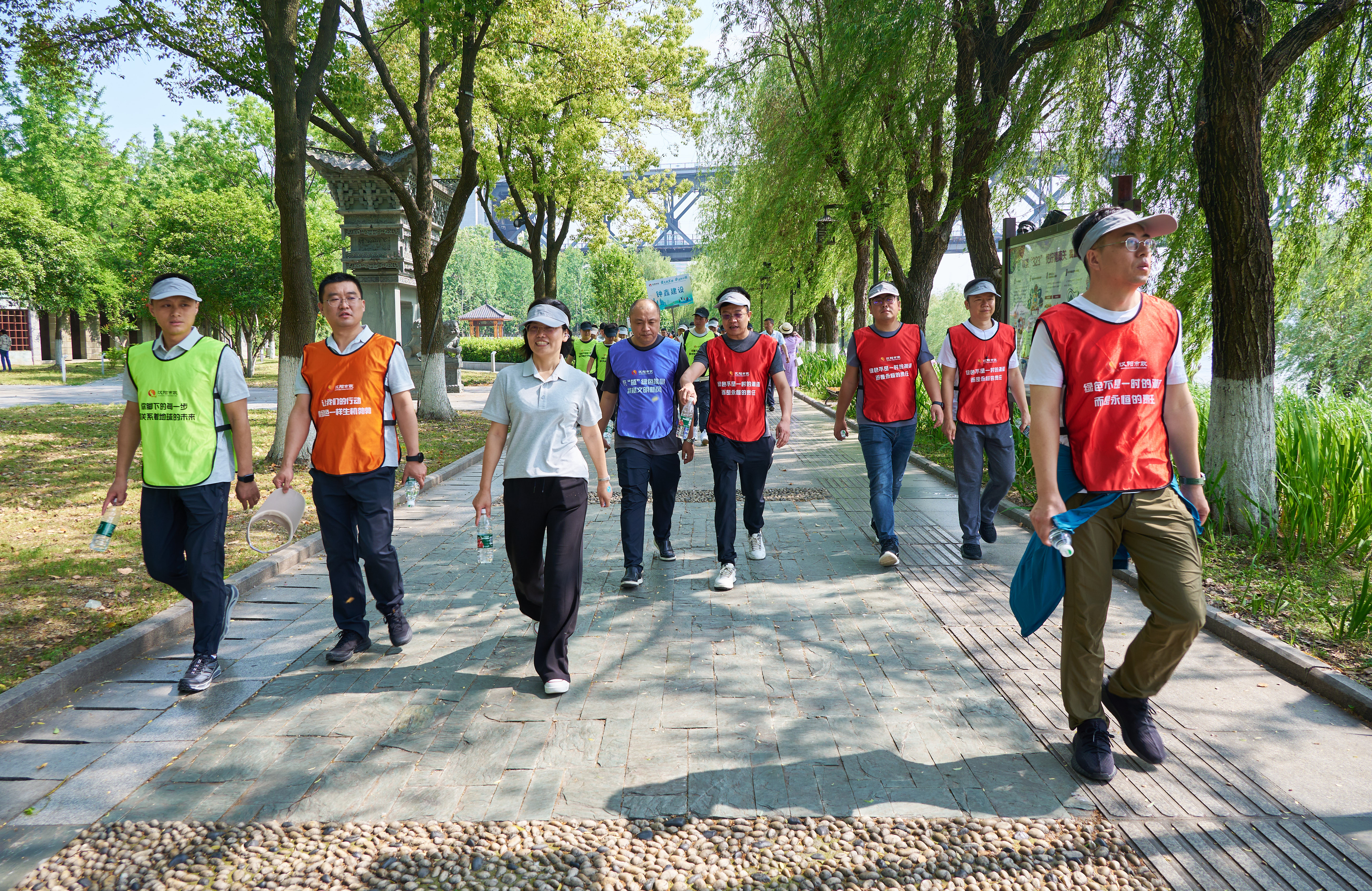 隨后職工徒步活動正式開始,百余名公司職工邁開步伐,沿著南岸嘴江灘公園與漢陽江灘徒步路線行進。徒步路線全程三公里并巧妙地設置3個打卡點。徒步過程中,職工們精神飽滿、熱情高漲,紛紛到各個打卡點領取貼紙,現場歡聲笑語不斷,氣氛和諧融洽。酣暢淋漓的戶外徒步活動結束后,大家紛紛表示通過這次徒步活動,用腳步丈量綠色土地,用眼睛記錄美麗景色,不僅鍛煉了身體,更進一步激發了漢陽市政人奮勇拼搏的工作熱情。