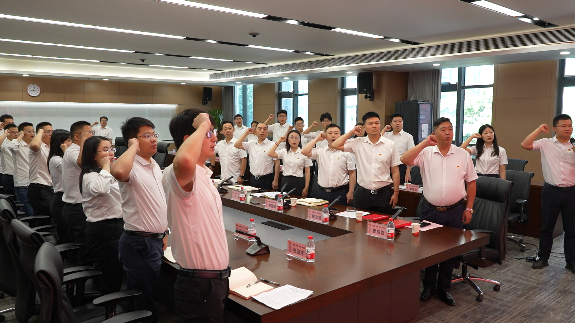 “我志愿加入中國共產黨,擁護黨的綱領……”,在許超同志的領誓下,全體黨員舉起右拳,重溫入黨誓詞、再憶入黨初心。
