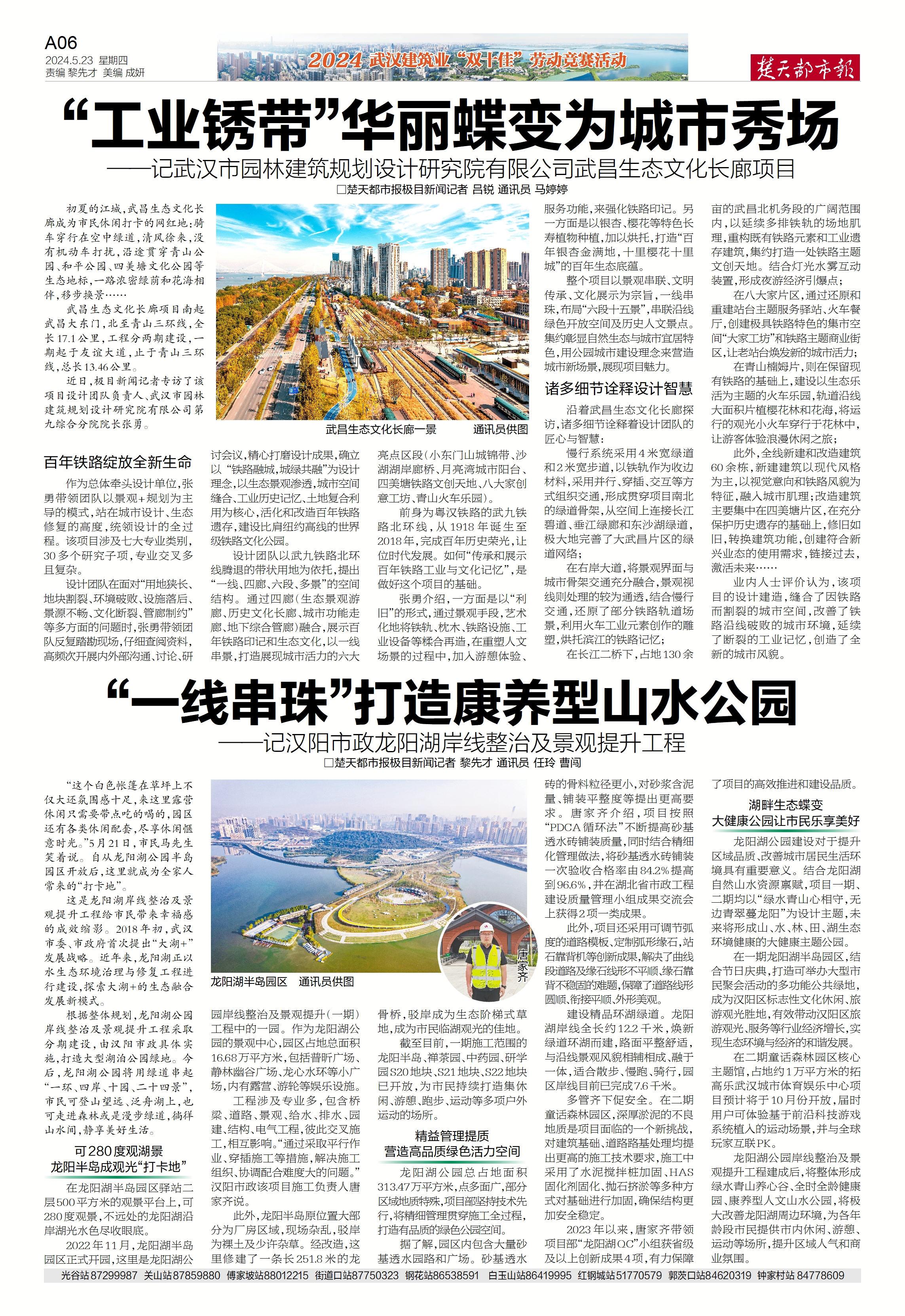 楚天都市報推出《“一線串珠”打造康養型山水公園——記漢陽市政龍陽湖岸線整治及景觀提升工程》專版報道。