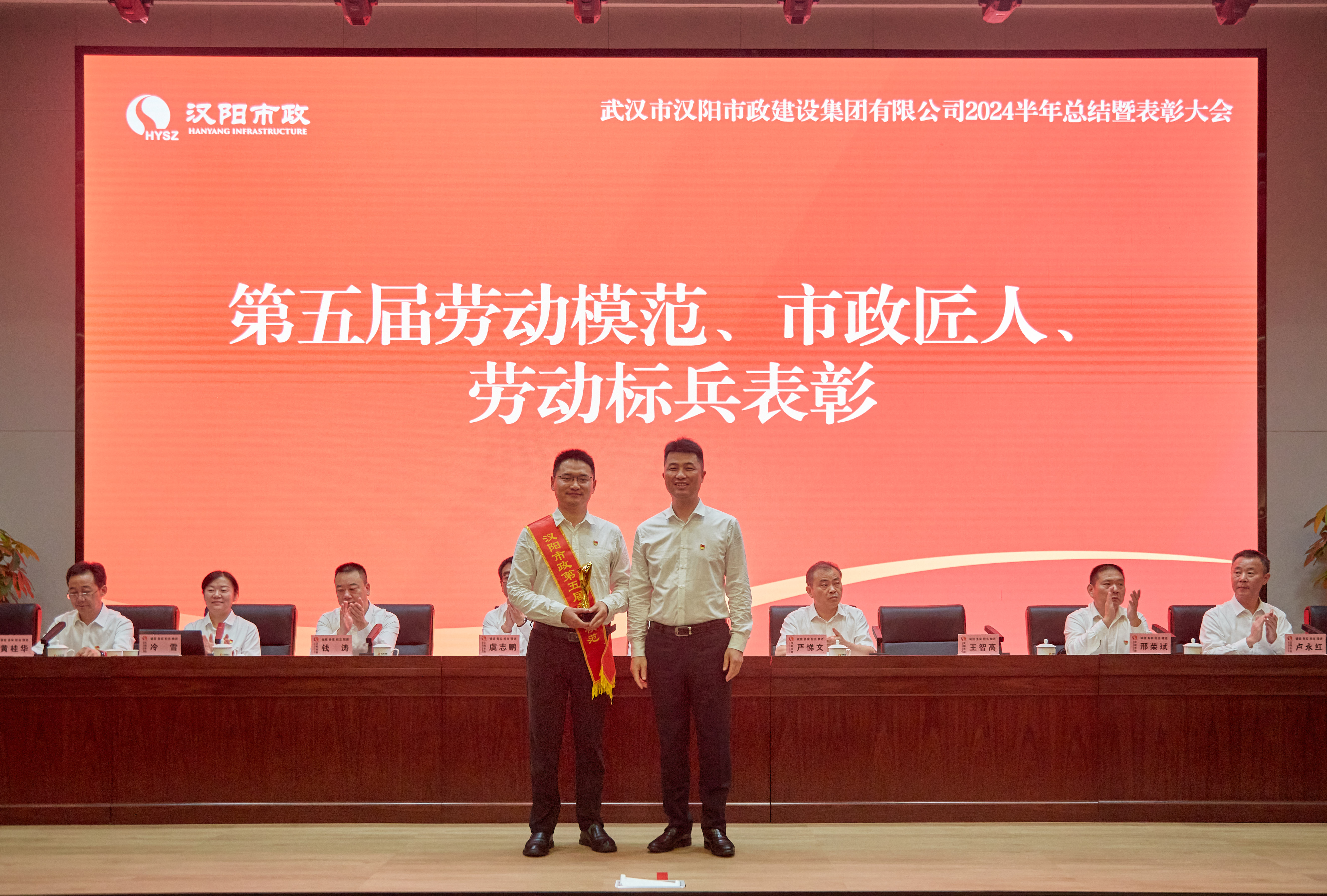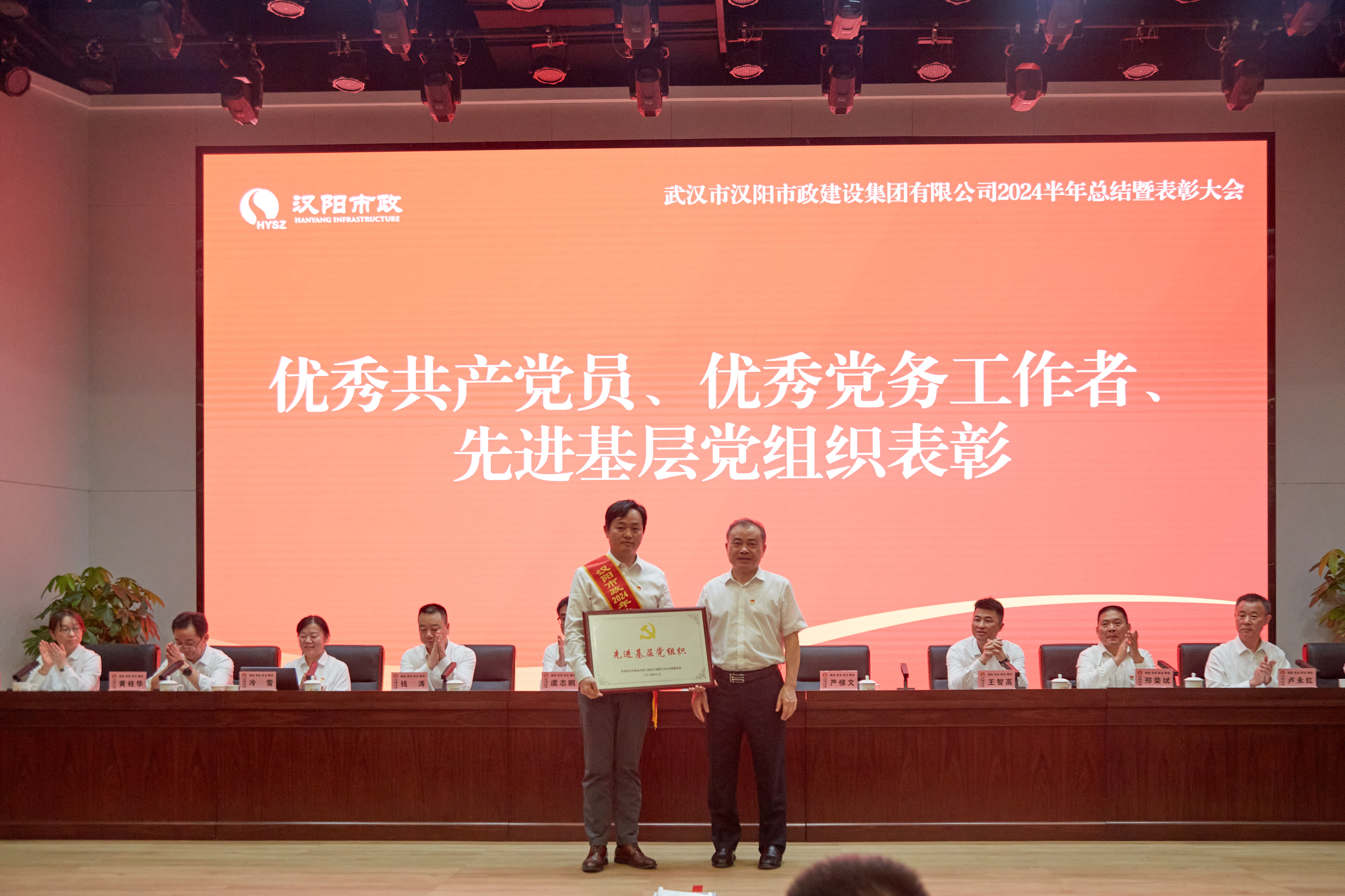 漢陽(yáng)區(qū)住房和城市更新局黨組書(shū)記、局長(zhǎng)朱源松,漢陽(yáng)市政黨委書(shū)記、董事長(zhǎng)嚴(yán)悌文,副董事長(zhǎng)虞志鵬,總經(jīng)理王智高等黨委班子成員,各分子公司副科級(jí)以上干部、骨干員工代表以及所有受表彰的先進(jìn)集體和個(gè)人參加大會(huì)。