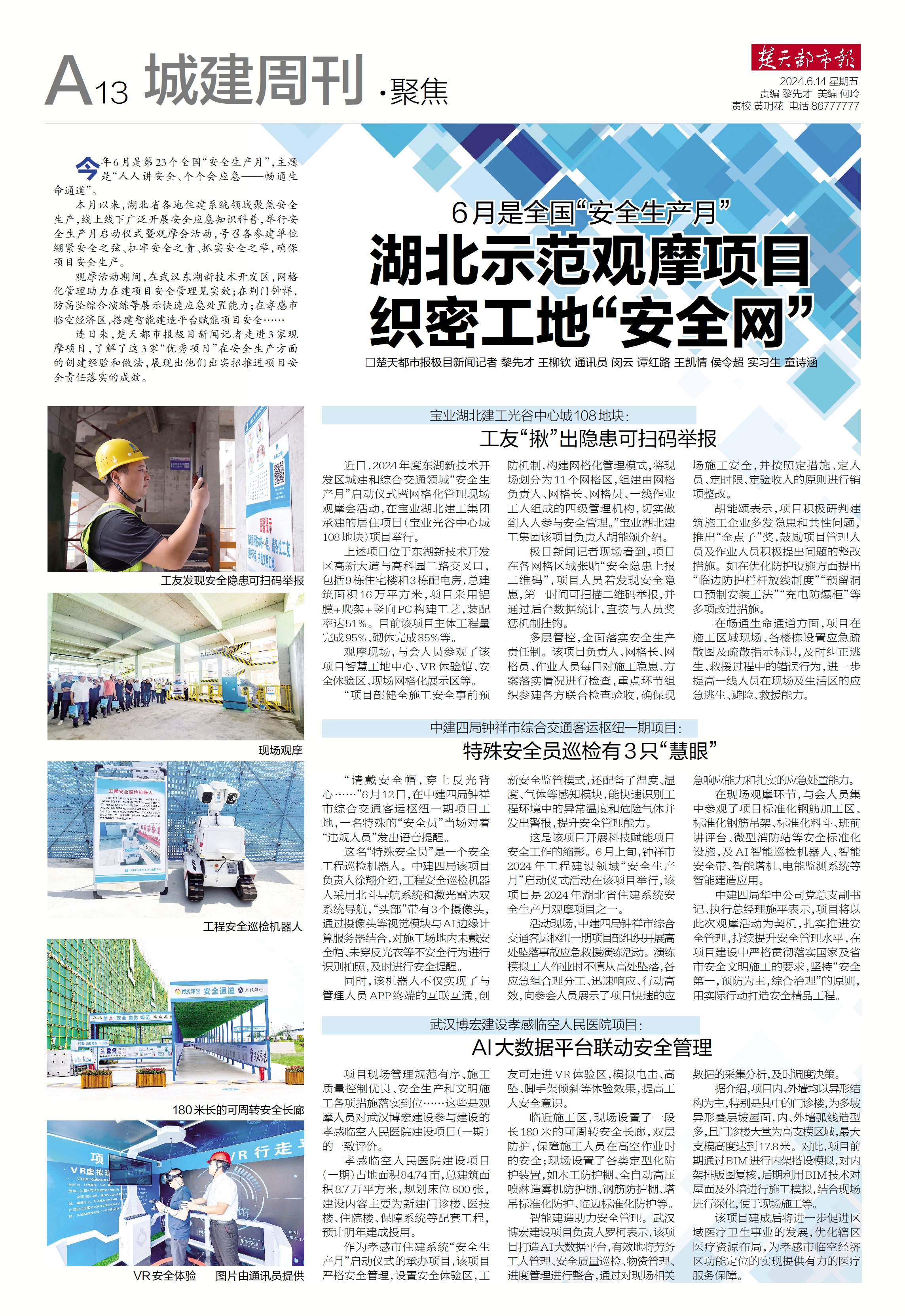 楚天都市報推出《6月是全國“安全生產月”——湖北示范觀摩項目織密工地“安全網”》專版報道。