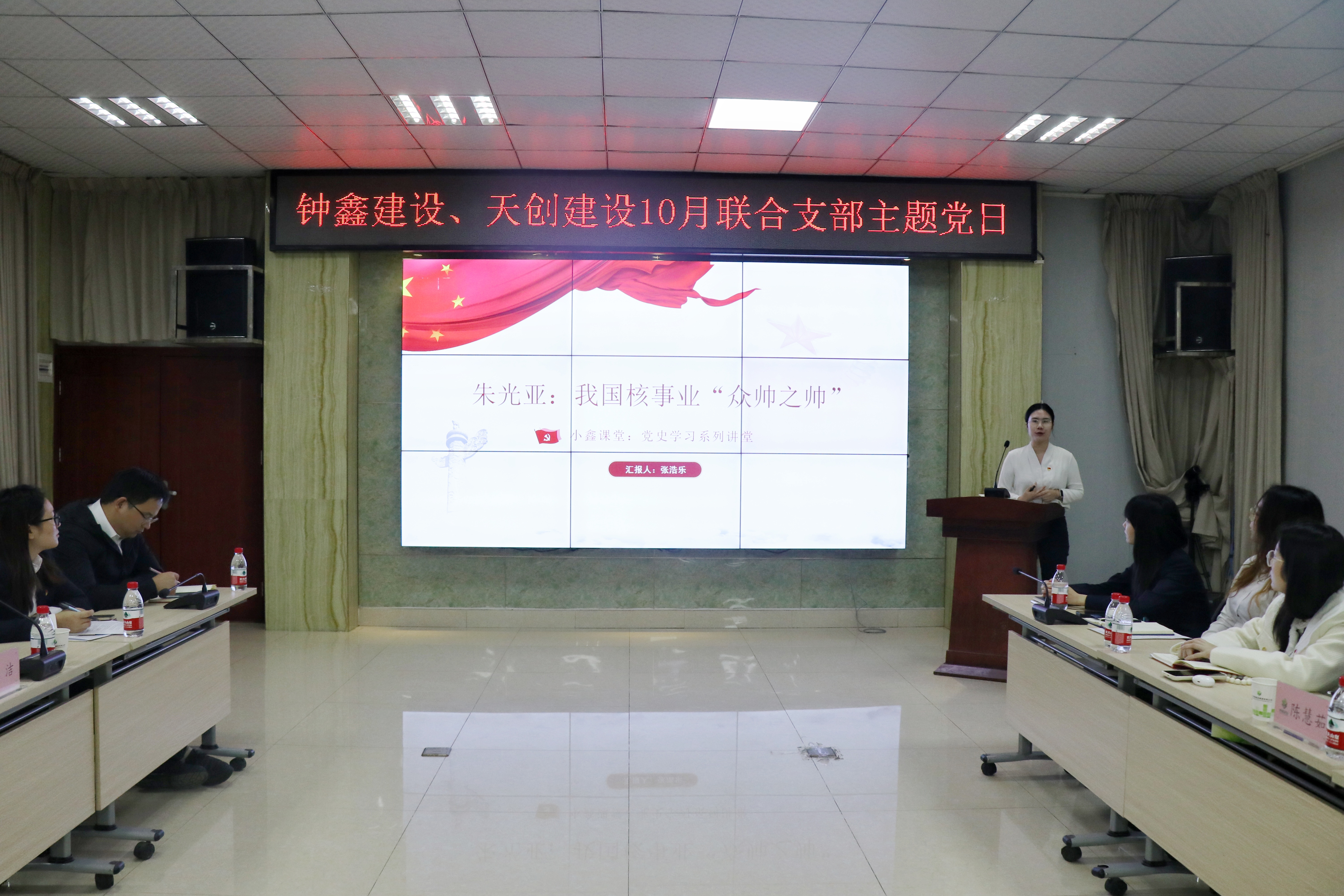 偉大事業孕育偉大精神,偉大精神引領偉大事業。黨員現場觀看《精神的追尋——中國共產黨人精神譜系:“兩彈一星”精神》視頻,從中汲取奮進力量;鐘鑫建設黨員張浩樂同志以黨史課堂的形式,為大家分享了“兩彈一星”元勛朱光亞“一生只做一件事”的奮斗歷史,號召廣大黨員弘揚“兩彈一星”精神,強化擔當意識。